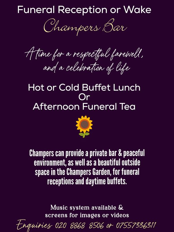 A great venue for day-time reception events with food/music. Available for hire for funerals and celebration of life gatherings. Please call 07557336311 to arrange.